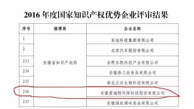 關(guān)于2016年度國家知識(shí)產(chǎn)權(quán)示范企業(yè)和國家知識(shí)產(chǎn)權(quán)優(yōu)勢(shì)企業(yè)評(píng)審和復(fù)核結(jié)果公示的通知